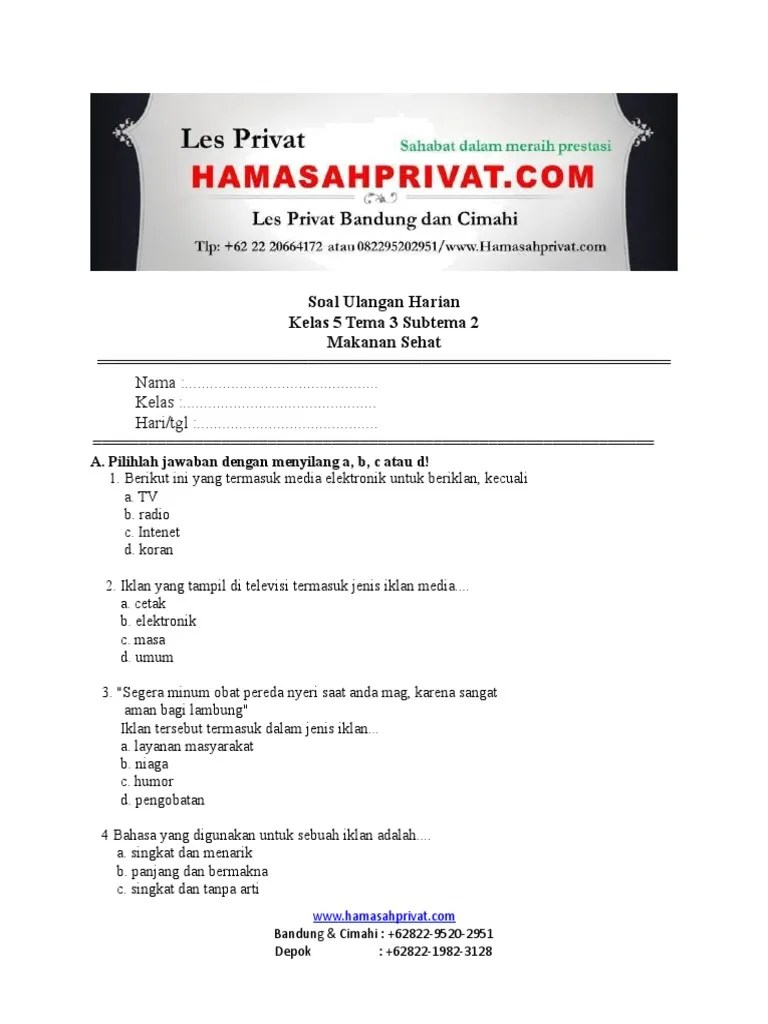 Tema 6 energi dan perubahannya soal tema 2 subtema 3 kelas 6. Soal latihan sbdp kelas 4 tema 8 subtema 2 חידון.